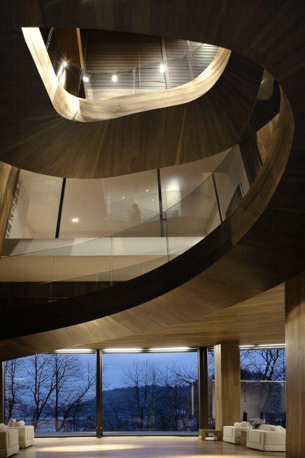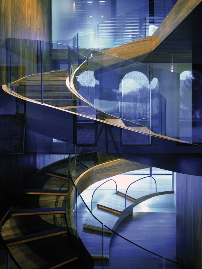 conducts you to the new living area. The curved stairs define things, connect the old and the new, and play