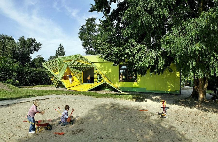 not only bestowed the name to the kindergarten but turned into architecture. The Baupiloten and the child