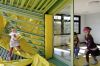the dominant colour, be it in the entrance or the corridors with the lemonade gallery where the children