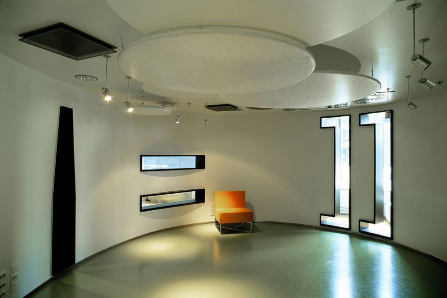 Functionally the building is divided into two longitudinal parts. The open public spaces, the Children’s