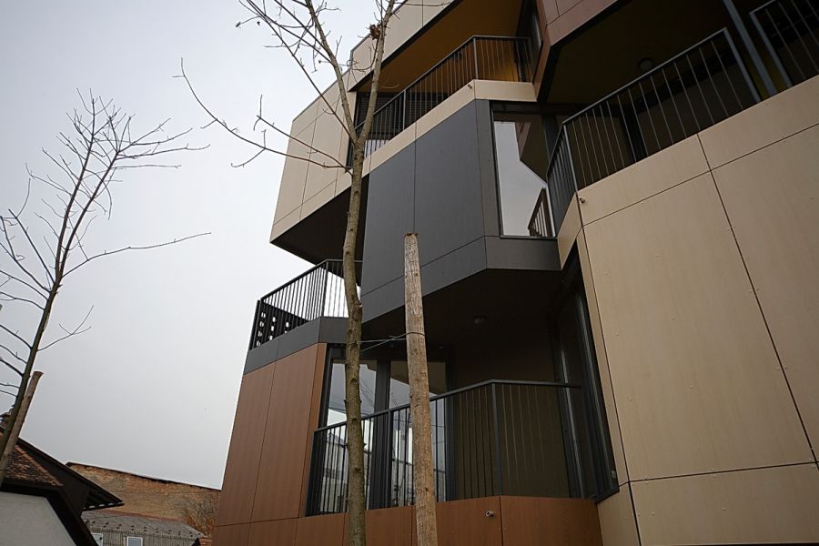 30 degrees window-wings towards the quieter and south orientated side. In the future also 2 more blocks