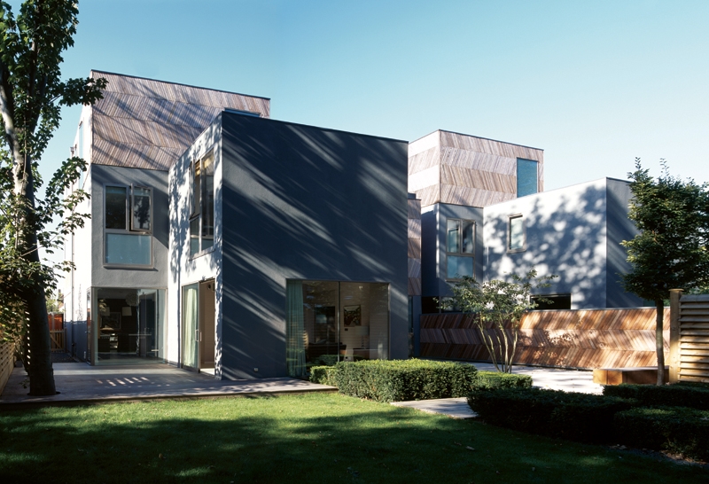 façades, each 400sqm open-plan house is composed of two surfaces of herringbone timber and graphite