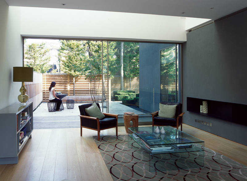 These planes interlock and fold inward at the centre of the house to create a double height entrance hall
