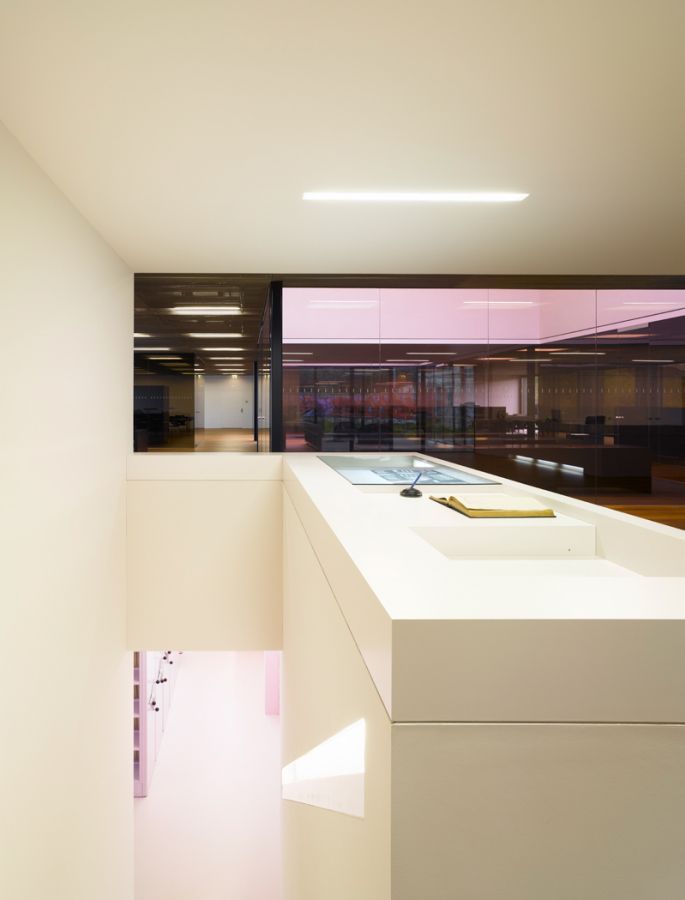 longer horizontally but vertically organized. By placing the public zone on the second floor the visitors‘ area