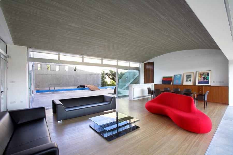 It was asked for an introvert residence, with internal yard where the water would constitute the sovereign element of the space but also of the whole work. Exploitation of the natural parameters to the best possible means, being the south-east sun and the western air, the spaces to have height and light and also to be plain and hospitable to the art collection of the householder.