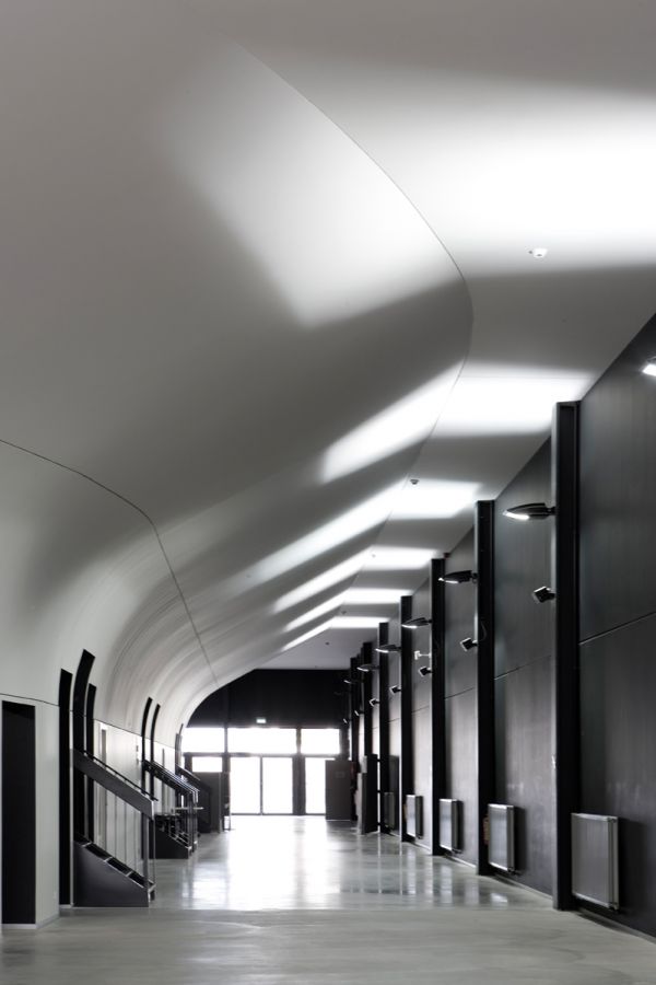 Finally, these developments include a sports complex, with a shopping centre and office space – good for a total of 23,000mē. This sports temple is above the half submerged shopping complex. Around the stands, one is surrounded by an aura of positive rooms. In addition, two parking towers were constructed, providing parking space for 500 cars.