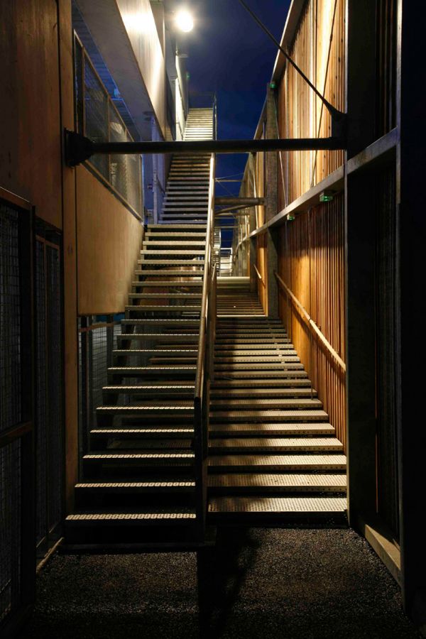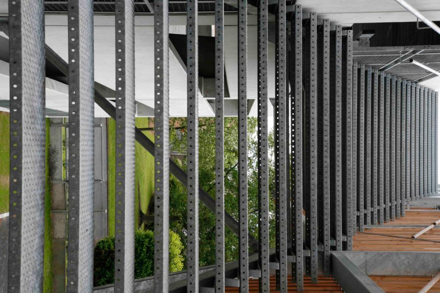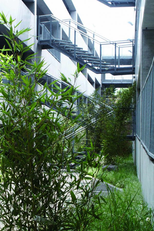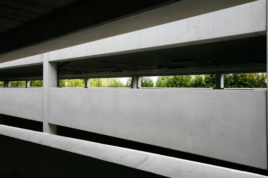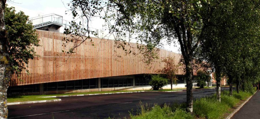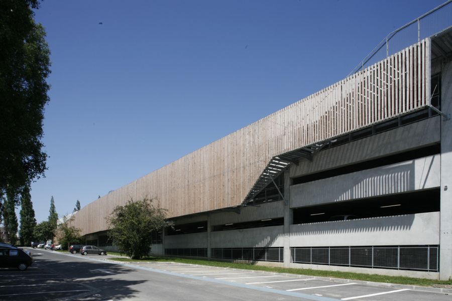 The building will house 850 parking places for hospital staff and visitors. The study focused on the best manner in which to make the routes taken by pedestrians and car drivers both clear and comfortable and to afford them views of Valenciennes. The slope of the parking lot is continuous and the breaks between levels have been removed. This configuration optimises the surface areas of the ramps and allows the site coverage of the future building to be reduced. The acoustic comfort is better and pollution levels are lower. The gain in space is put to good use in several ways. To the north, by keeping a line of existing trees. At the centre of the building, a break consisting of small garden areas brings in natural light and contributes to allowing fumes to escape from the parking areas. To the south, an exterior circulation gallery channels and directs users of the parking lot towards ground level and the entrance to the hospital centre. A large openwork structure consisting of spars of Douglas pine acts as a guard railing and forms the façade on Avenue Désandrouin.