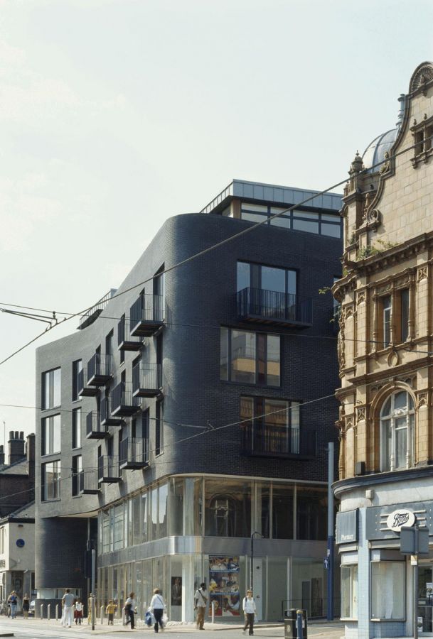 orthodoxy of the municipal red brick vernacular. The perimeter of the trapezoidal site is rendered