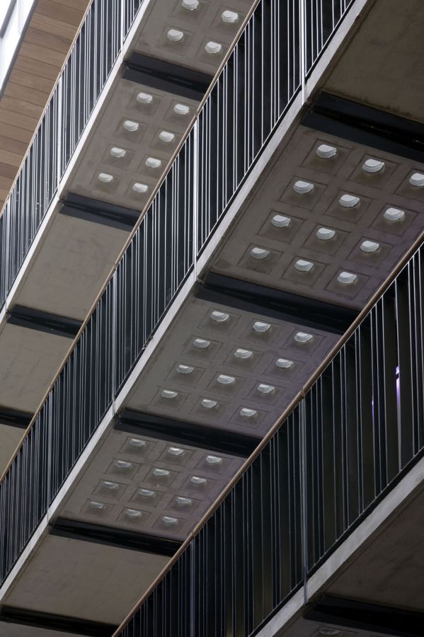 and occur at random intervals, shuffled across the facade. This dynamic is a wilful counterpoint to the mass