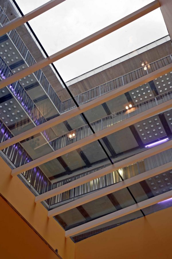 of the masonry envelope and is further articulated through the use of translucent coloured glass ventilators
