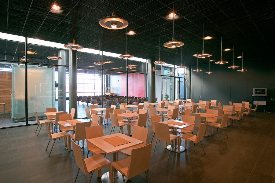 The furnishing represent esteemed Finnish furniture design and the departure hall has a piece of art created