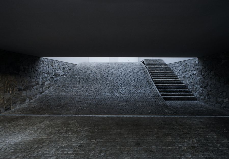 The 10 meters wide driveway following slope’s declivity, was additionally lowered