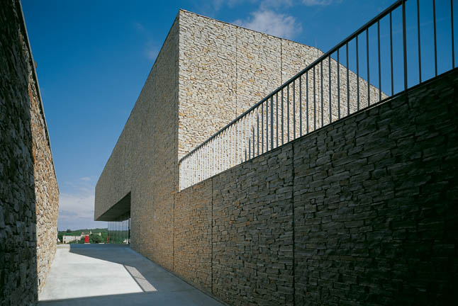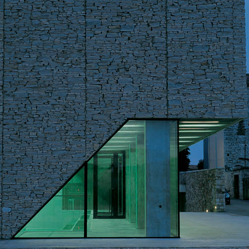 the prehistoric times. The traditional local dry stone wall motif has been used as a