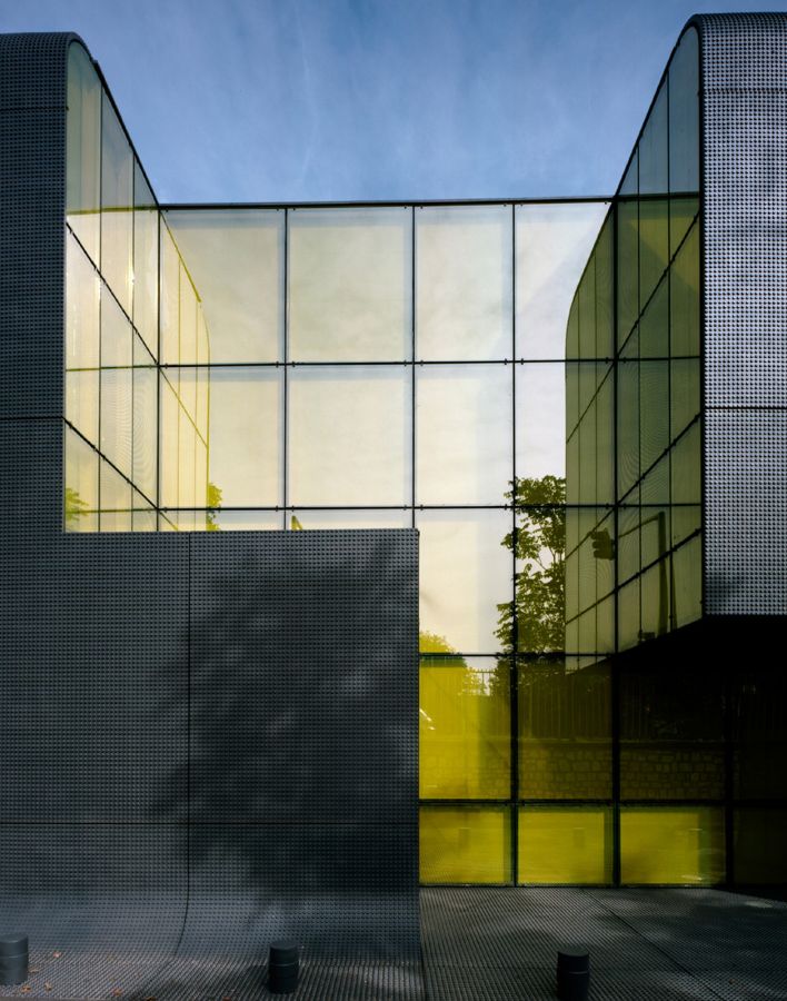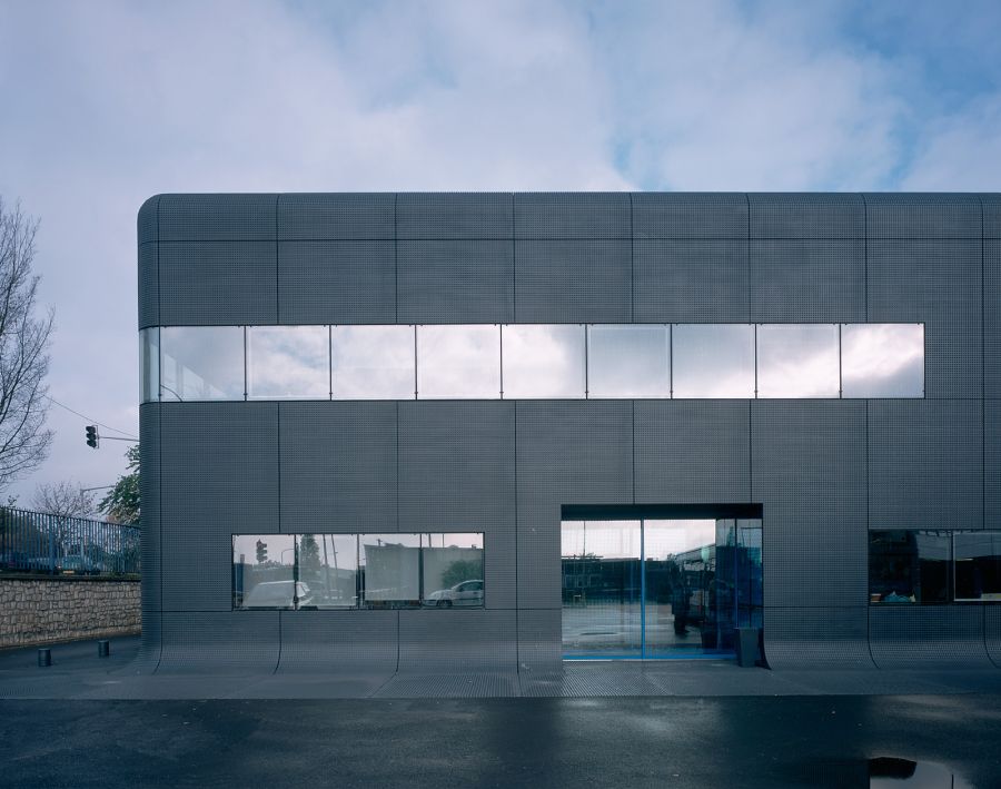 designed. It ensures a continuity of the ground from the road, to the skin of the façades,