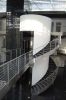 The three level high entrance hall receives light from the roof and is dominated by the vertical elevator case