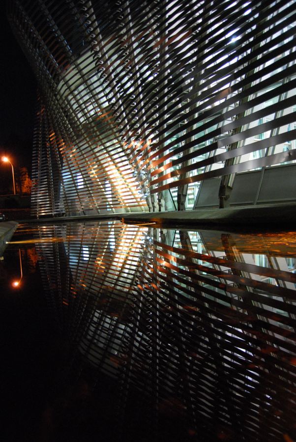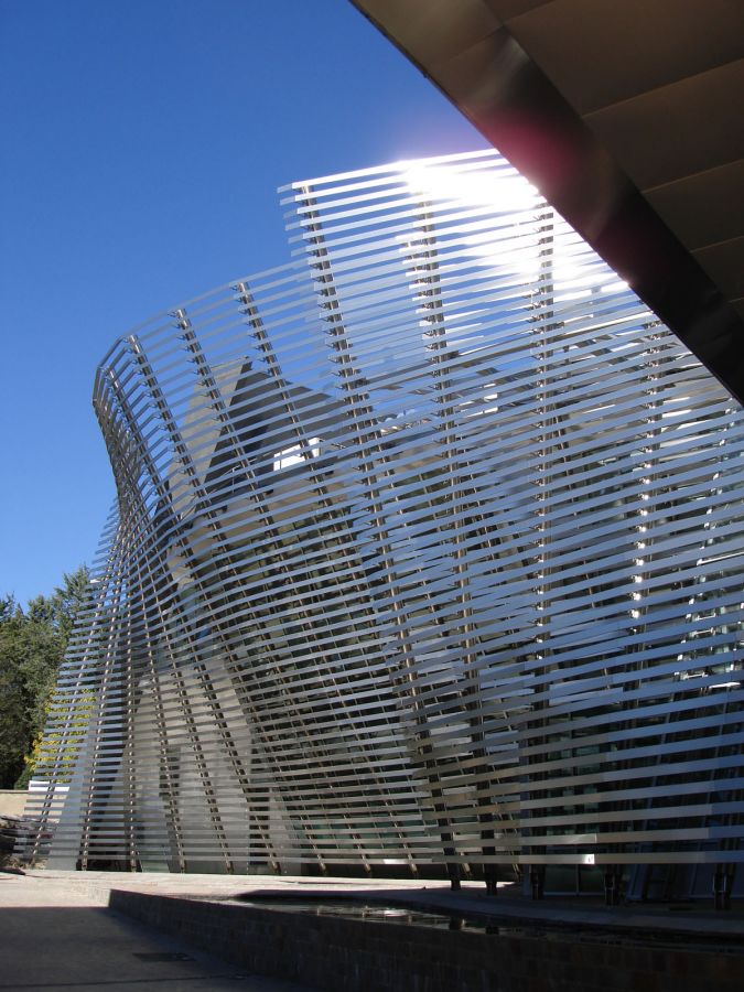façade of stainless steel is shaped according to a geometrically warped geometry which is characteristics of