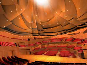 and the 3500 seats Auditorium entirely clad in wood inside and outside. Its shape is