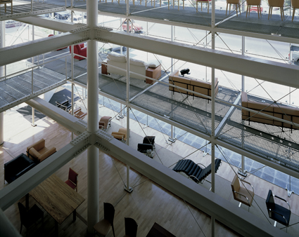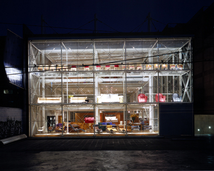 the program called for the design of a unified, open, multi-level space to display furniture and other products