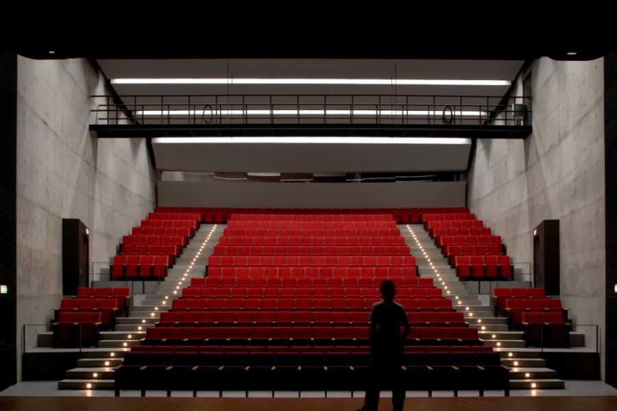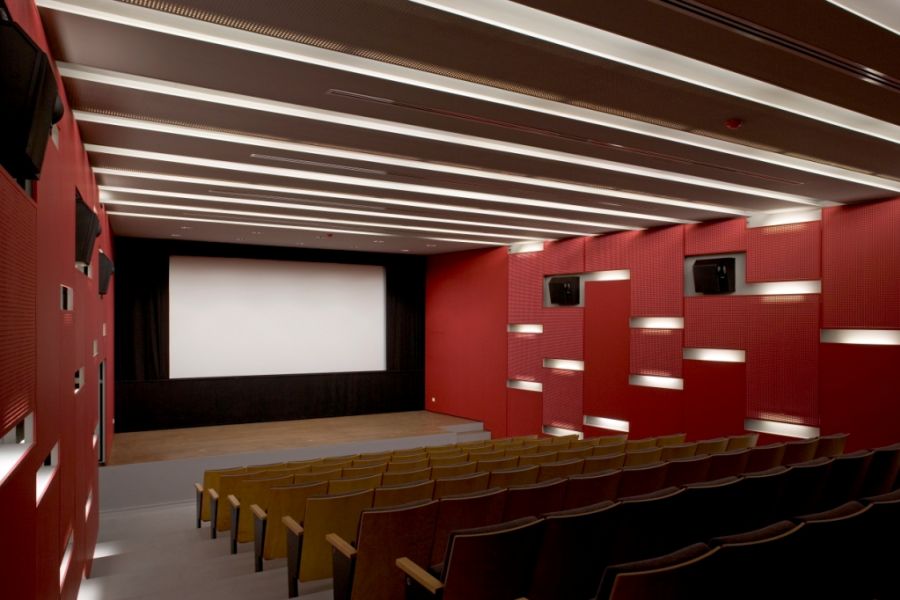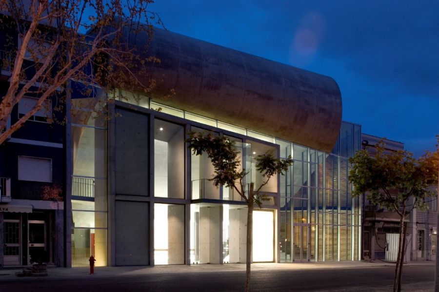 The Cartaxo Cultural Centre stands out for the bold exposed concrete cantilever that projects itself like