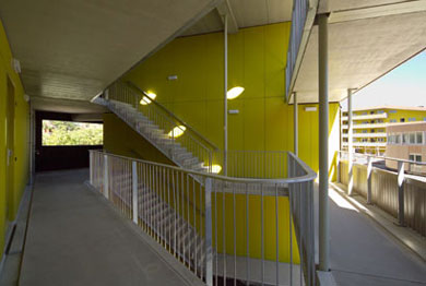into a basket. It contains 79 rental apartments and 14 service apartments for young handicapped people.