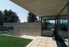 at ground level. The huge entrance porch, that serves also as covered car-park, is carved into the hill