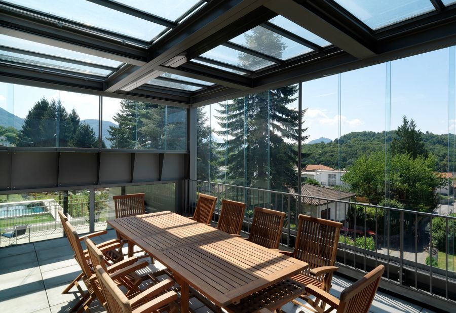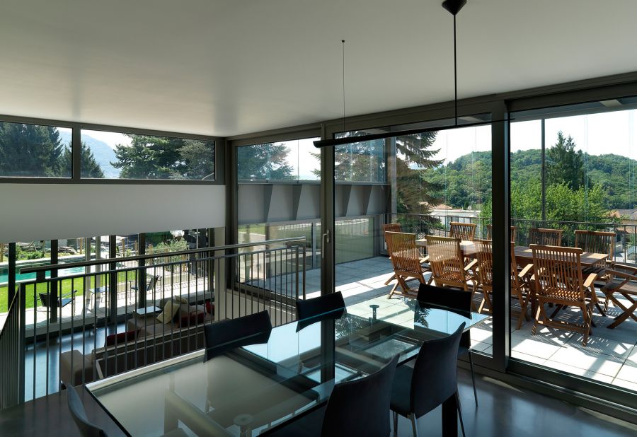 The use of shadowed spaces and of glazed winter gardens in this particular region becomes an energy