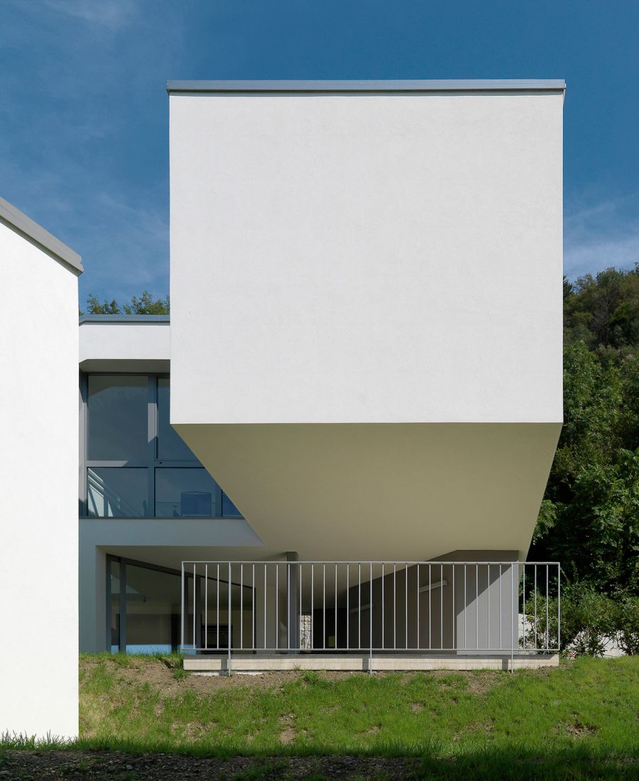 Carved in a clear square geometry, the spaces meet the slope and extend in a spiral -