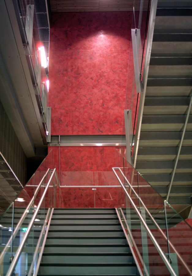 The lobbies of the Library and the outside market place are visually connected through gigantic glass wall