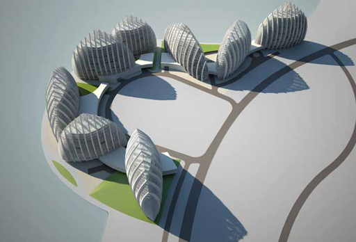 The urban plan suggests the building orientation and massing provide maximum view toward the water