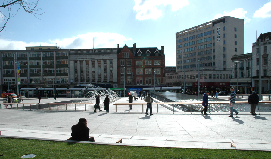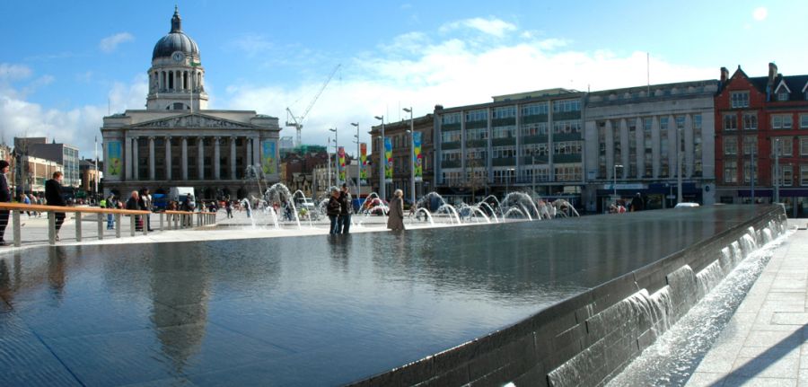 water feature at the heart of the square. As Nottingham is situated on a hill, a system of pumps were