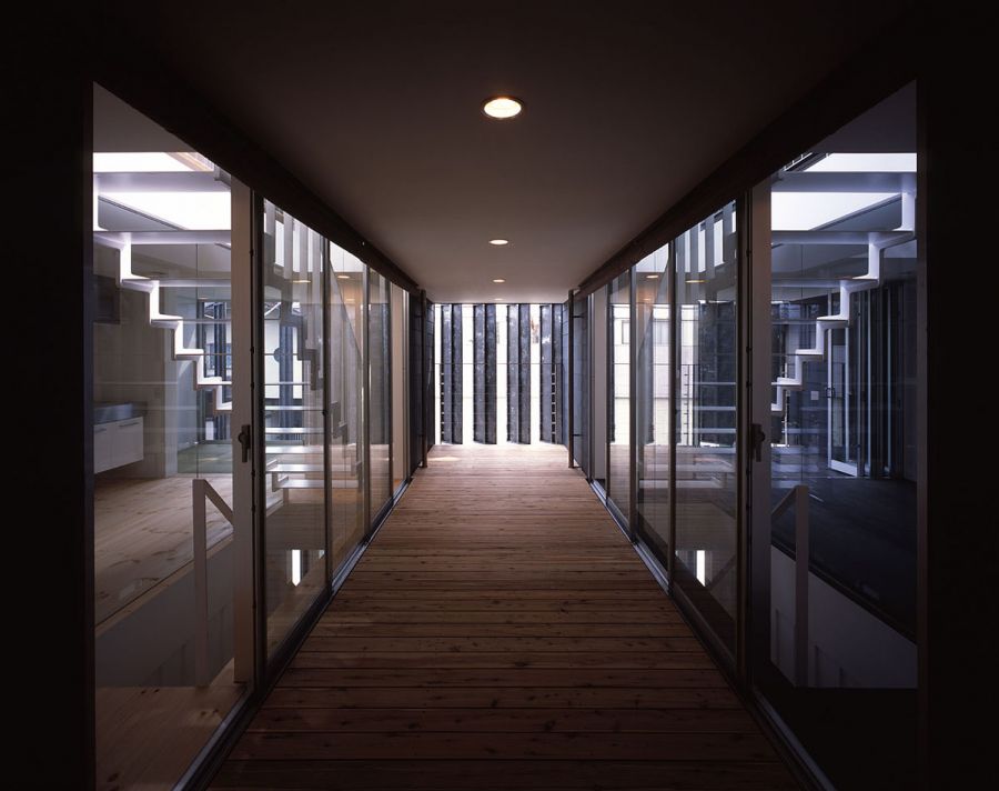 space. Transparent glass and sudare or Japanese wooden blinds are used on the common decks