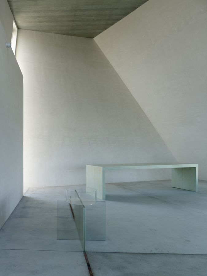 of the building is experienced as two solid stones that form a composition with ecclesiastical overtones.