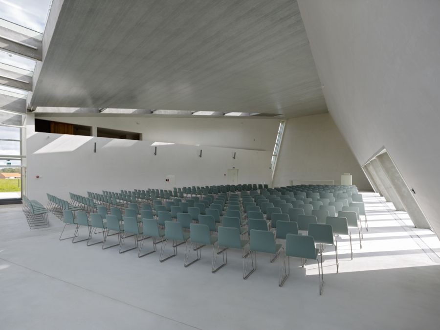 façade facing the fjord and a “fishing net” dividing the space of the church, the design clearly takes