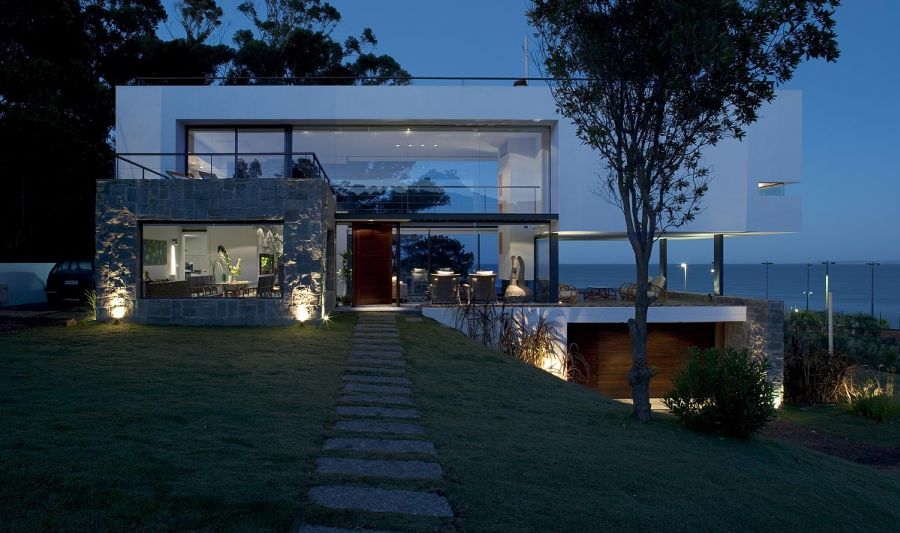 Punta Ballena II is a private residence located on a steep slope looking on to the Atlantic Ocean with
