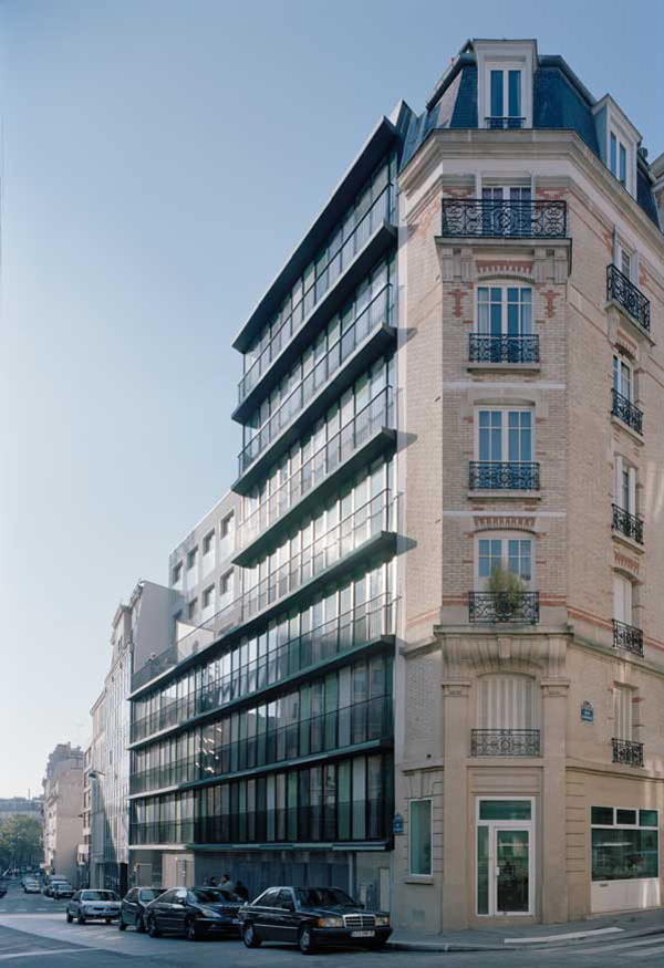 of the architecture of the Gossec Street, proposing a sharp collage. East side, the project is aligned with