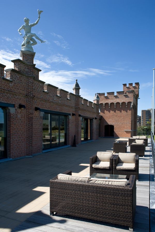 The protected ‘little castle’ has been restored and renovated into the clubhouse for the golfers on the one hand; and on the other hand, into a restaurant with a stunning view on the first floor. The Kinepolis movie complex slips into these urban natural surroundings. The building’s volume follows the projection and visible lines of the halls, and minimises its presence in comparison to the monumental views. The concept is based on the flow of pedestrians – starting from the Royal Galleries through the foyer along the racecourse. The corporate venue rooms on the first floor offer a stunning view over the racecourse. On the other side, 114 apartments are being built, whereby the maritime character can be found in both the design and in the use of materials, with large glass surfaces and white concrete. The continuous use of terraces makes the sea part of life in this building.