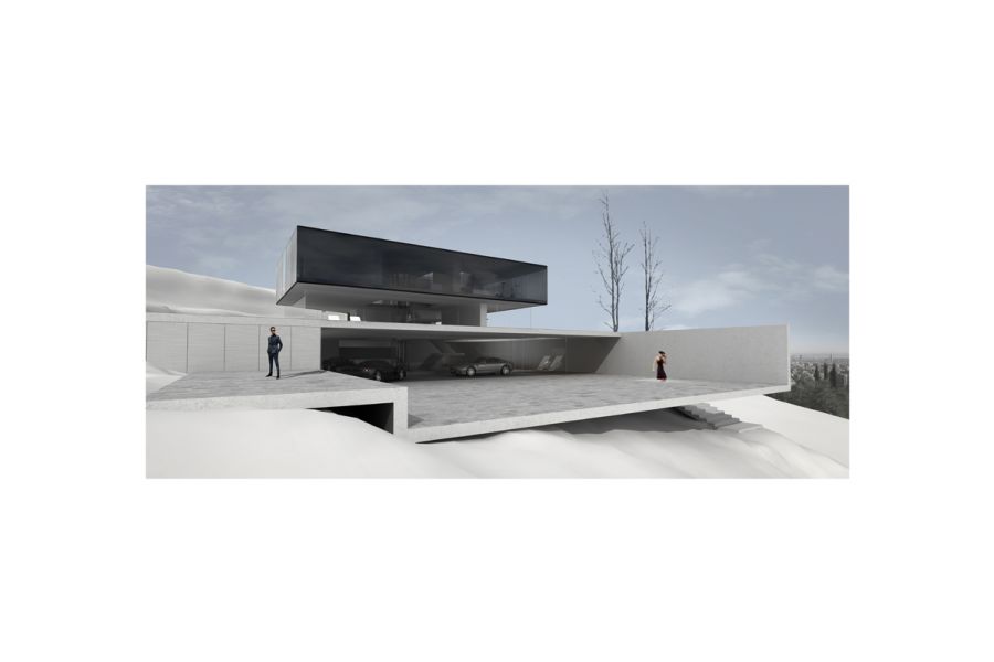 Barcelona, April 2009. This house in the mountains, designed by the architect Joan Anguita, brings all the glamour of Los Angeles to Barcelona. Partially suspended above the terrain, it is the dream home of a young businessman who loves collecting cars and organizing gatherings for his friends.