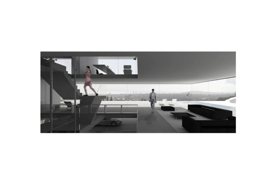The house also boasts two swimming pools, each with a single lane: one outdoors, on the first floor, and another indoors in the basement, which contains the leisure area, complete with a cinema, bowling alley and gym. The roof terrace is a deck area designed for pleasure, with a jacuzzi, solarium and a large bar.