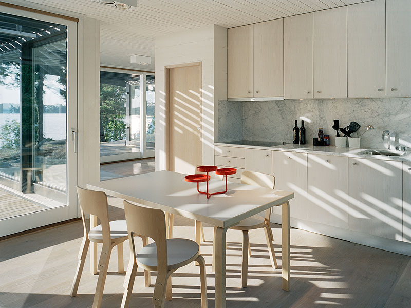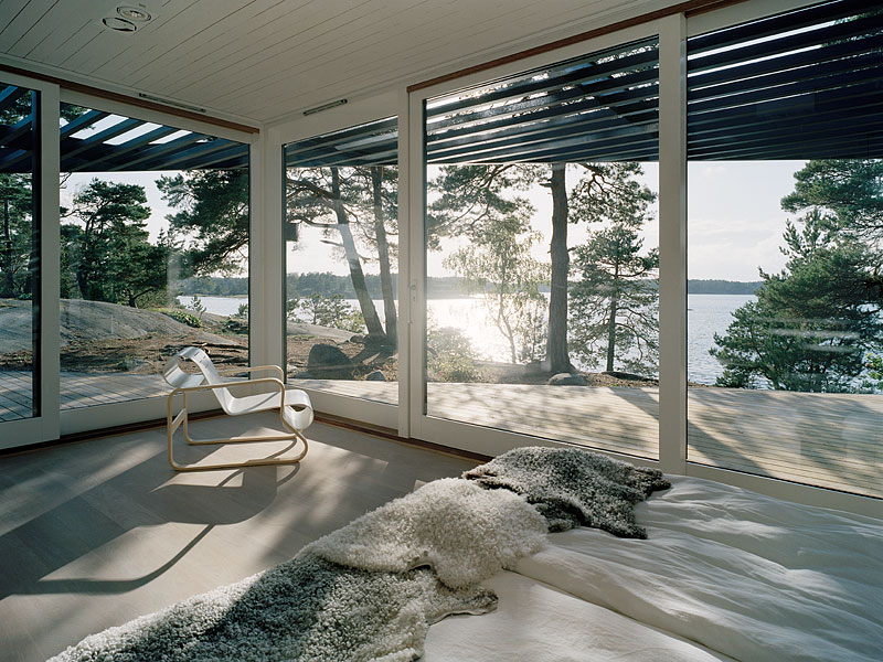 archipelago. The horizontal character of the black stained exterior relates to the verticals of tall grown pines