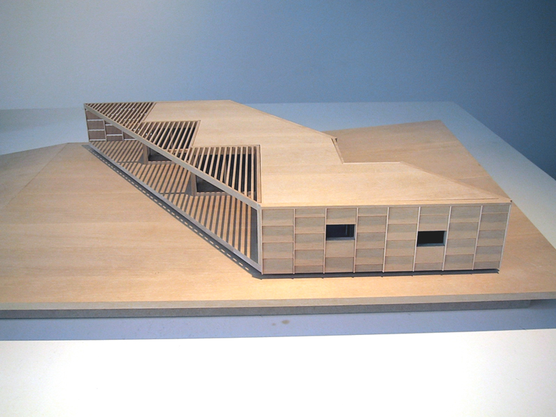 The geometry of the plan is generated by the specifics of the site, the house being fitted into the flat surface