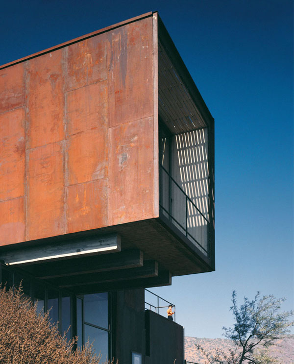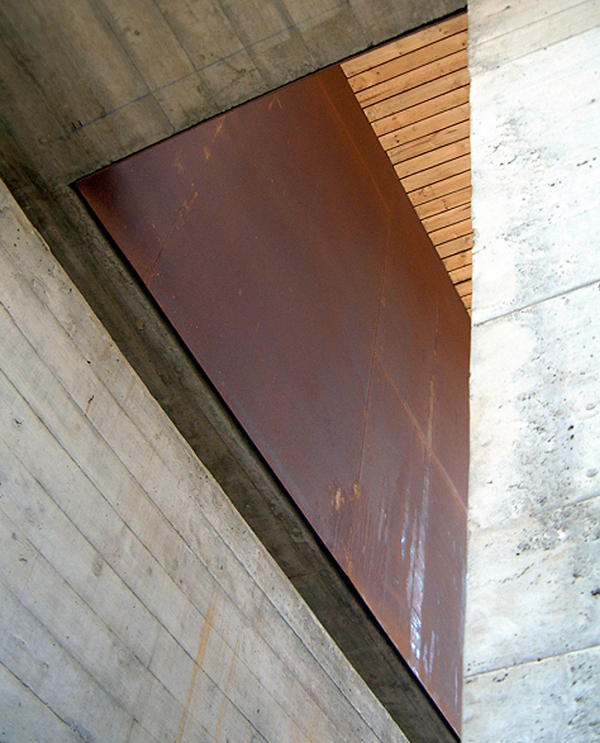 This severe volume is covered with steel plates that create a double facade that gets hot and therefore