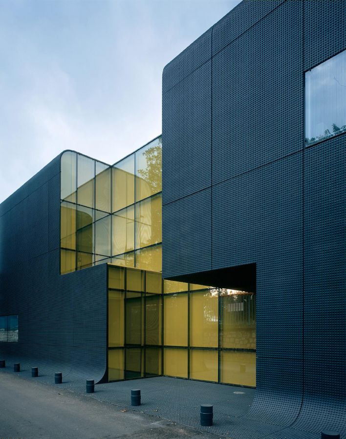 designed. It ensures a continuity of the ground from the road, to the skin of the façades,