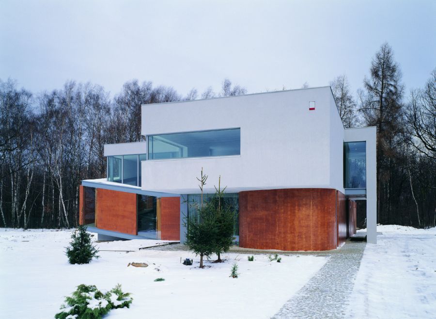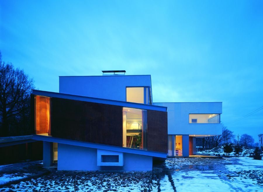 The building is located on the outskirts of Katowice, near a forest, on a land deteriorated by 4th category mining