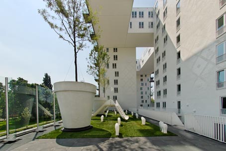 The towers are positioned in such a way that on the one hand they do not block views from the neighborhood