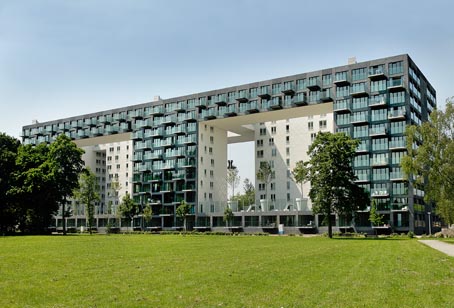 Buurt 9 consists of 174 standard small housing units that are located in three L-shaped buildings positioned