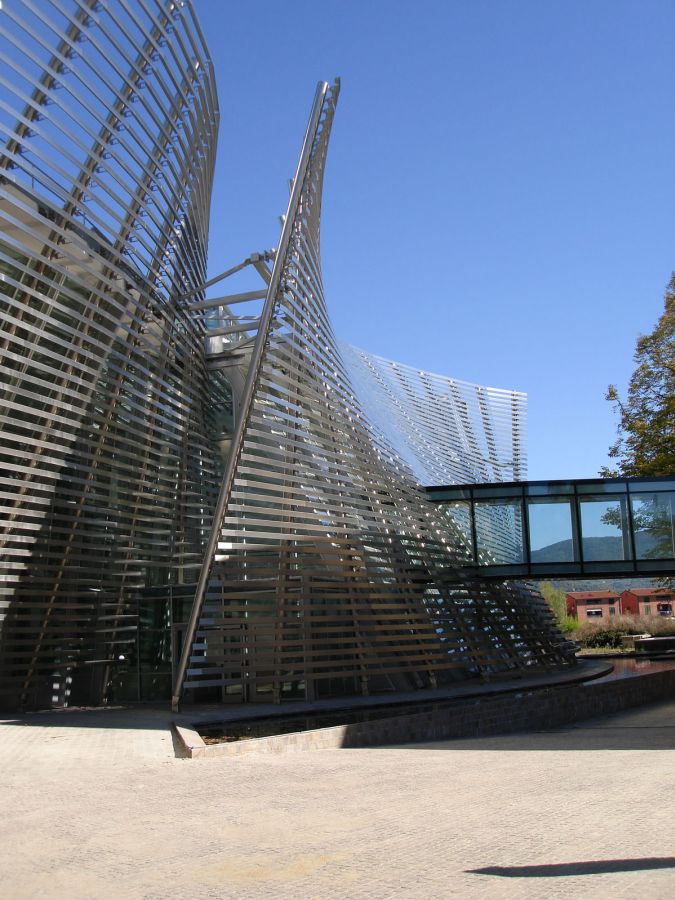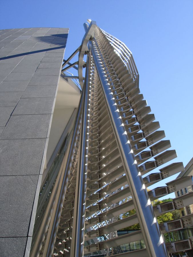façade of stainless steel is shaped according to a geometrically warped geometry which is characteristics of