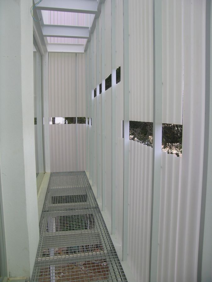 a wall structure of load, saving the light of 9 mts by means of a system of alveolar plates. The circulation is