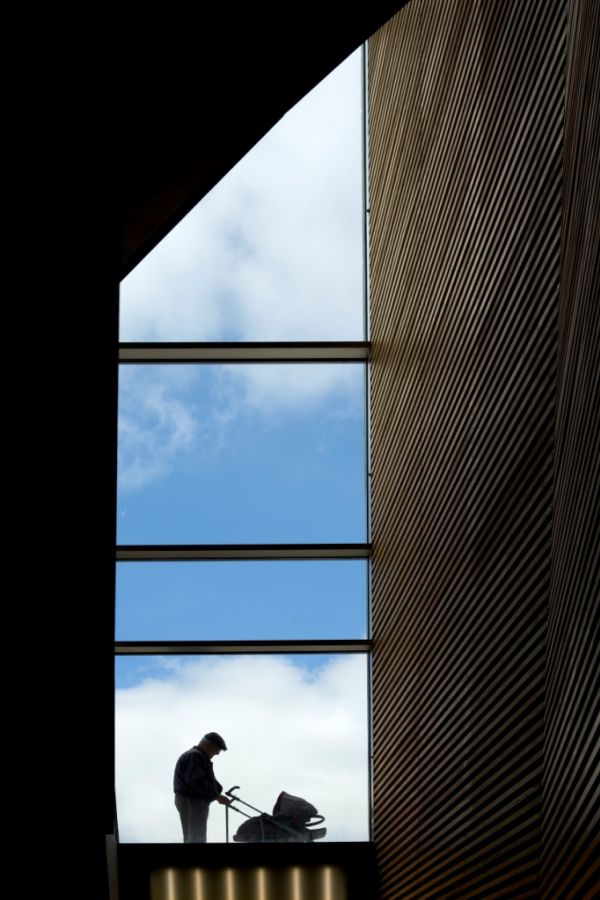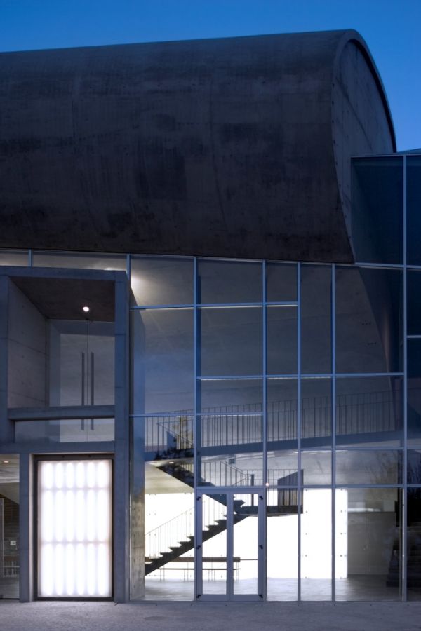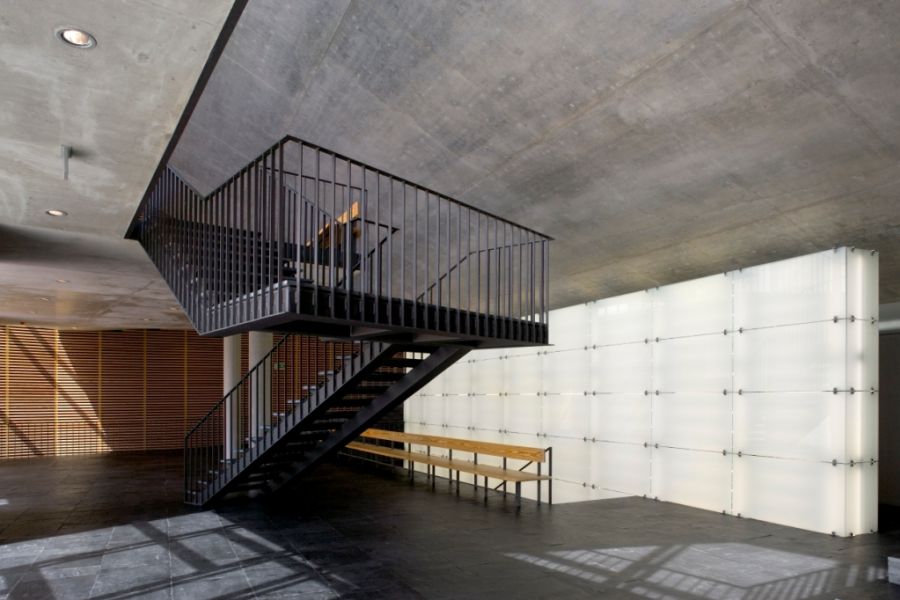 The concrete and glass screen façade acts as a mediator of scale, allowing one to inhabit this exterior wall.