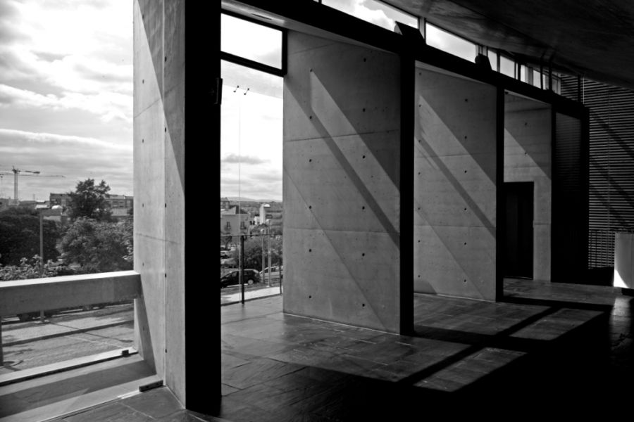The Cartaxo Cultural Centre stands out for the bold exposed concrete cantilever that projects itself like
