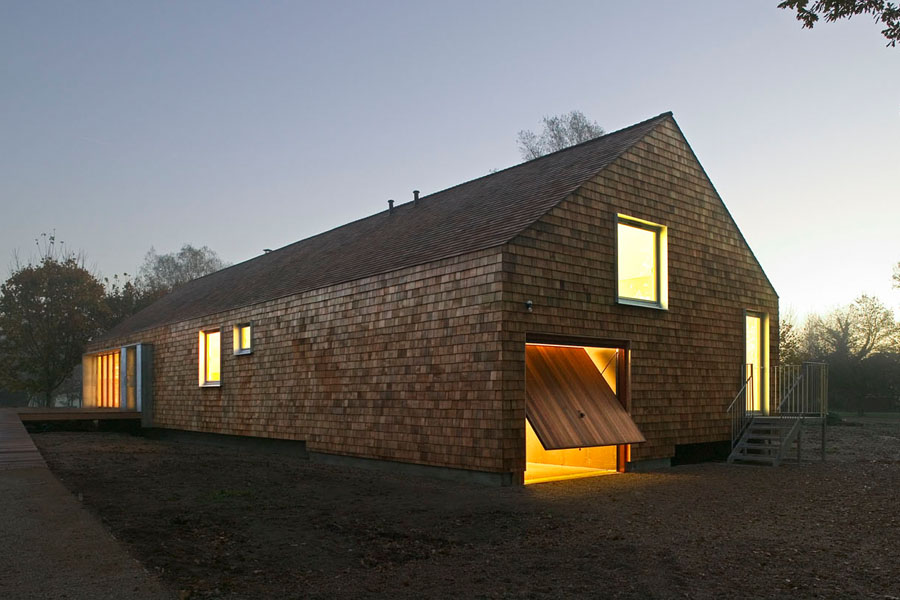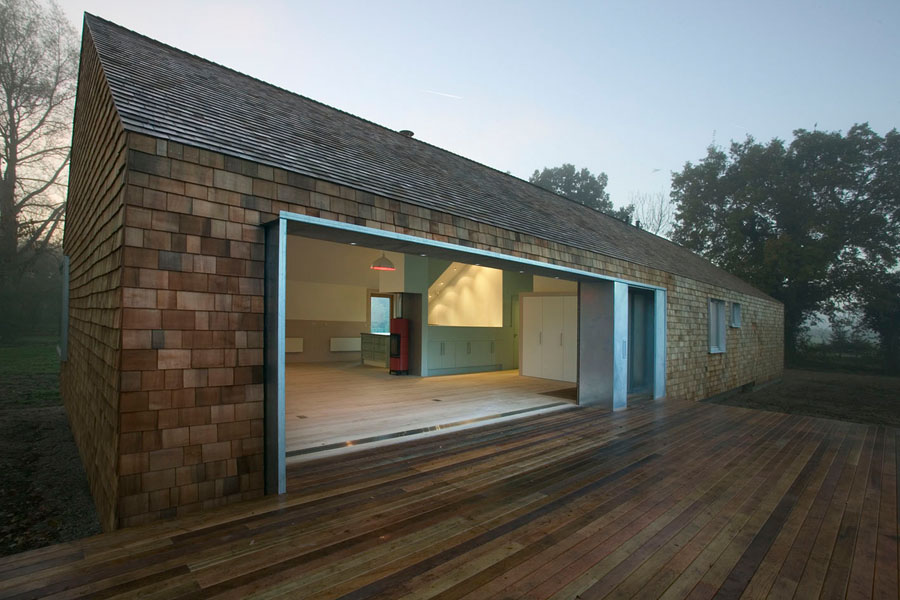 systems, the cedar reads as a dramatic sleek protective cloak, which sits harmoniously with its countryside